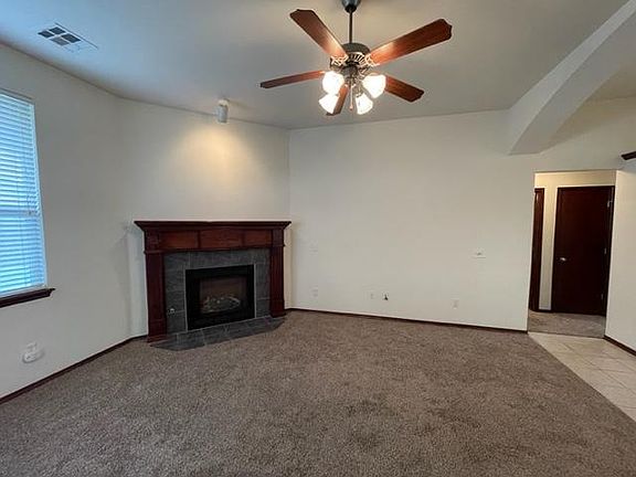 Super clean home on cul de sac corner lot with 1,519 square feet. Newer carpet. Split bedroom plan. Large primary suite with separate tub, shower, double vanity and walk in closet. Laundry room with builtins, counter and washer and dryer. Kitchen is open to living with fireplace. Gas cooking, refrigerator and seperate pantry. Covered back patio. Long concrete driveway and oversized two car garage. One small non agressive breed dog under 40 lbs allowed. Owner/Agent. One small non agressive breed dog under 40 lbs allowed.