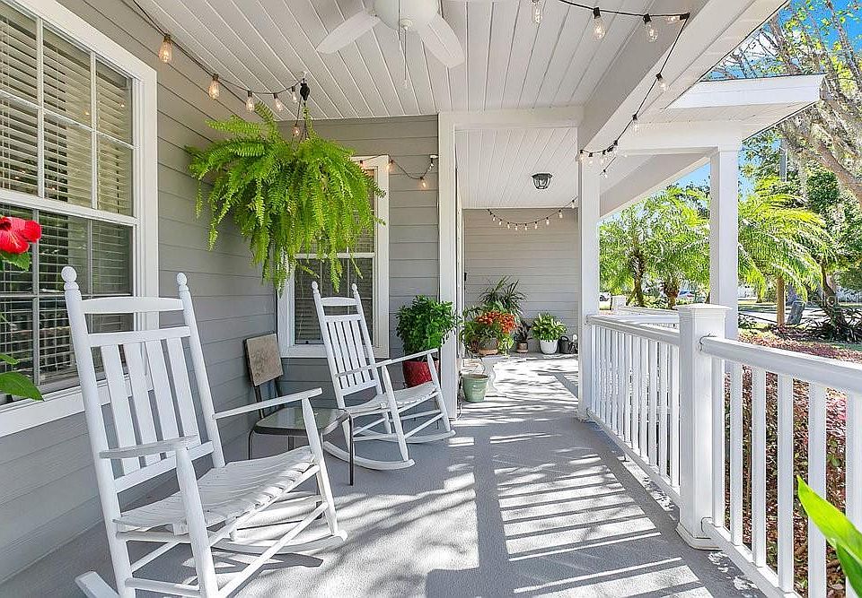 Beautiful granite countertopsWelcoming front porchNewer refrigerator and dishwasherPot rackOak flooringTravertine tileFormal dining room