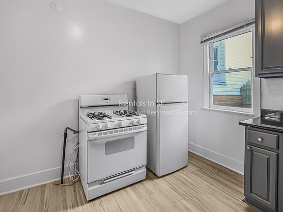 This is a light and bright studio apartment with newly renovated kitchen and bathroom. This classic SF apartment is located in a super convenient and fun part of town. Eat in kitchen w/ gas oven range and refrigerator (no dishwasher) and room for small table or island. Updated bathroom w/ tub and shower combination. Also, includes linen closet in bathroom. There is also a small room off the kitchen that could be used as pantry or additional storage.