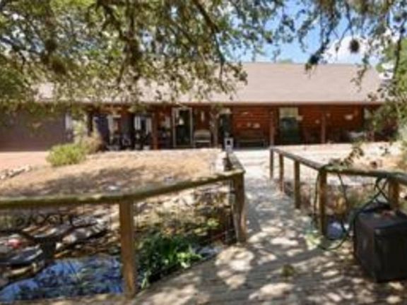 One owner custom built cabin with 7 inch log exterior walls, nestled in the hill country on nearly 8 acres. Just minutes from Wimberley, the river and Jacobs Well. No restrictions, can build second home or divide. Hill country views. Tranquil Koi filled pond with two waterfall features just off front porch and a walkway to a large deck under a canopy of trees, perfect for entertaining. Open kitchen features custom built birch cabinets and 3 Custom hand made Tiffany style chandeliers in this beautiful home