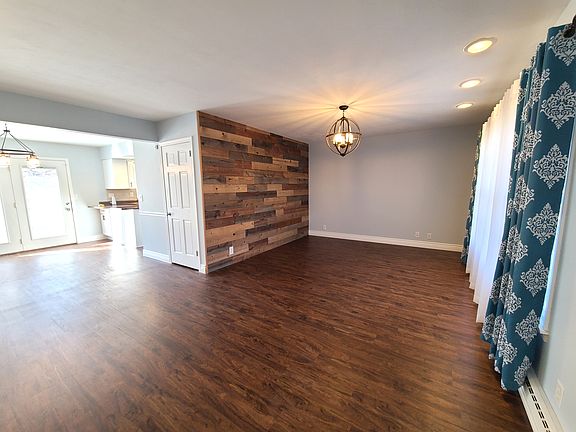 Beautifully updated ranch located on a quiet cul-de-sac and backing to spacious Anderson Park. Attractive reclaimed wood feature wall in living room. Wood laminate floors & freshly painted throughout. Bright kitchen with white cabinets, tile backsplash, new dishwasher, disposal, microwave and ample counter space. Dining room with door out to the large deck. New modern light fixtures in kitchen, dining room & living room. Gorgeous bath remodel in 2023 includes large vanity with double sinks, beautiful subway tile tub surround...all brand new. Three sunny bedrooms. Finished basement includes a second full bath, huge rec/family room area, and additional finished space that could easily be made into dedicated office space or a 4th bedroom. Large utility/laundry space.