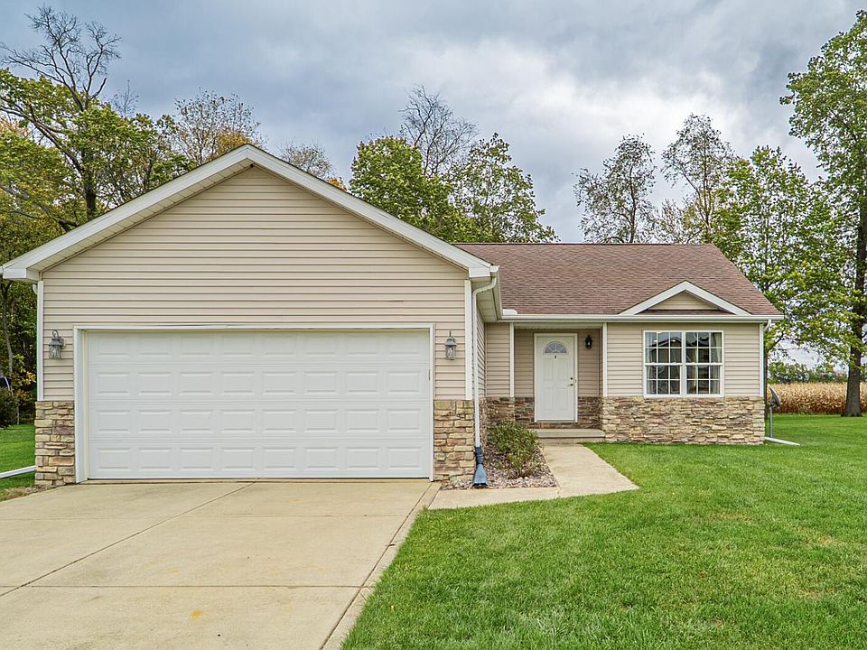 Incredible value for this beautiful RANCH home with NO BACKSIDE NEIGHBORS, 2 car attached garage, plus an ADDITIONAL DETACHED HEATED GARAGE, 3 bedrooms, 2 bathrooms, and a full unfinished basement. The main level of this homes offers an OPEN CONCEPT floor plan with a spacious living room, dining room, and kitchen space. The living room offers hardwood floors and tons of natural light. The kitchen features wood cabinetry, Corian countertops, and a white appliances. Off the back of the kitchen is a sliding glass door leading to the back deck overlooking the spacious backyard with NO BACKSIDE NEIGHBORS. Also on the main level is 3 spacious bedrooms including a master suite with an updated 3/4 bathroom! The full hallway bathroom also features beautiful updates and a full tub/shower. The unfinished basement features space to potentially double your square footage and a laundry space. Other features of this home include main level laundry hookups, mudroom, detached HEATED garage with garage door opener and electrical, and much more!