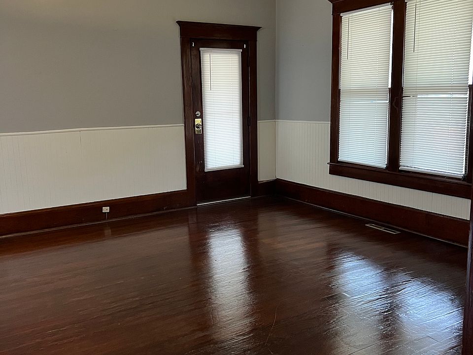 Separate dining roomGood size bedroomsHard wood floorsWrap around front porchEat in kitchenNew vinylWalk in closets