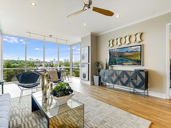 Unique fully furnished 2 bedroom, 2 bathroom condo in an award winning building in Austin's vibrant West End neighborhood, walkable to Whole Foods, Trader Joe's, BookPeople, the Butler Hike-and-Bike Trail, and many other notable Austin venues. Enjoy the luxury of hardwood floors, quartz countertops, high ceilings, floor to ceiling windows, and stainless steel appliances. One of just a very few special condos that offers the fabulous convenience of downtown living with a beautiful view of Duncan Park and the UT tower beyond. Take advantage of the 24/7 concierge, heated pool, hot tub, gym, clubhouse, and conference rooms. Comes with in-unit washer/dryer, gas range and oven, and high quality furniture.