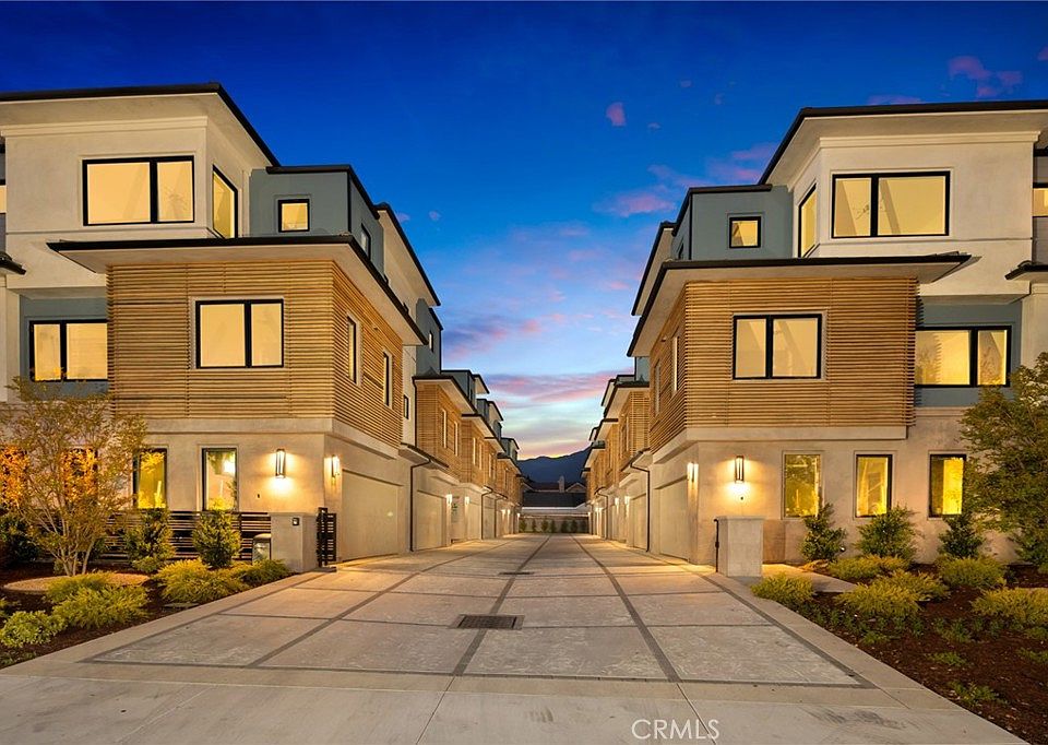 New construction community of 13 luxury tri-level condos. Each unit features 3 bedrooms, 3.5 baths, a private elevator, owned solar panels, and an attached 2-car garage with direct access into the unit. The first level has a bedroom ensuite, laundry closet, and parking. The second level features a powder room, a spacious kitchen with custom built-in appliances, a center island & pantry closet, that opens into the dining area, and a separate living room. The third level has 2 bedroom ensuites, including the primary suite with a walk-in closet, bathroom with dual sinks, and large walk-in shower. Elevator access on all floors for easy access. Tankless water heater and E/V charging in the large 2-car garage. Located in central Arcadia, this home is within walking distance of a plethora of shops, restaurants, grocery stores, and banks.
