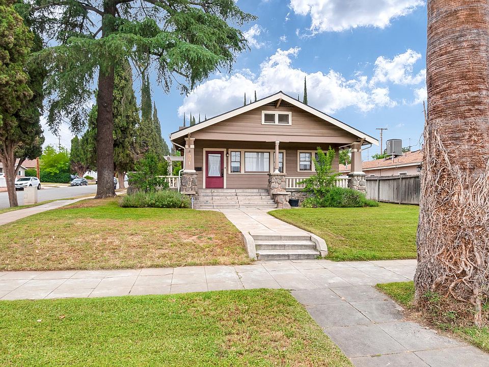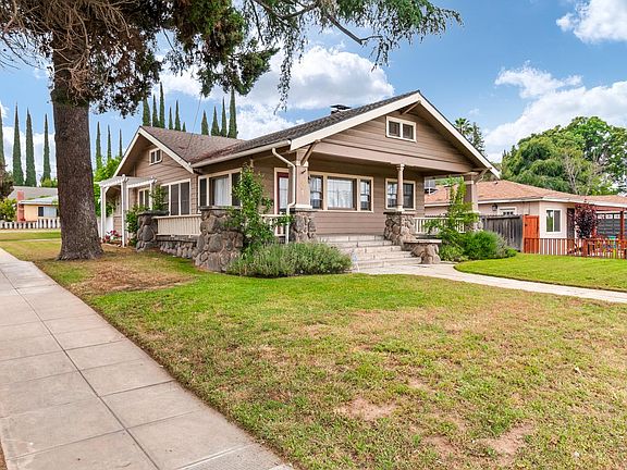 California Craftsman! Built in 1910 with wonderful period details. This home features a blend of new and original finishes. Gorgeous wood detailing, Original double-sided fireplace, leaded glass cabinets, wood floors in kitchen and new carpet throughout. 2 large bedrooms plus bonus room/ office in the main home, with a studio and 3/4 bath in the back of the property. Perfect for guest or in-laws. 2 cars detached garage.