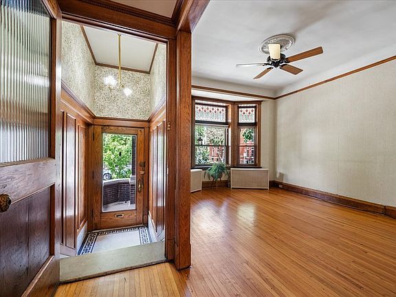 Vintage Graystone in wonderful Lincoln Park location at 901 W. Wrightwood. This high first floor unit has its own entry and is a spacious 3 bedroom, 1 bath with separate dining room. Vintage details throughout with natural woodwork and trim, narrow plank hardwood floors, pocket doors, intricate ceiling detail, stained glass windows, built-in features and decorative fireplaces. The plentiful Pella windows were all replaced a while back. Radiator heat and Space Pac Air. Boiler and hot water heater are in the process of being replaced. Roof newly silver coated in 2024. The eat-in kitchen features wood cabinetry, single bowl stainless sink, Kitchen Aid appliances, a built-in desk, island and granite counters. No parking on site. Laundry in the basement (2 machines). AND There's also an additional 1 bedroom plus office garden unit (that used to be connected by a set of stairs that's blocked off). It needs TLC but would be a great source of additional income, could be combined with the main unit or co-living space. Bring your ideas and contractor with you to the showing! Please note that the 2023 real estate taxes were $19,199.67. Self-managed association. Shared patio space between front building and coach house. Incredible walking location near both the red and brown line trains and so many restaurants, bars and shops.