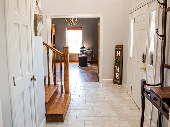 Beautifully designed four bedroom home situated on over a large lot, offering space, functionality, and timeless appeal. The primary bedroom is on the main floor, providing privacy and comfort. Two additional bedrooms share a well-appointed Jack and Jill bath, while the fourth bedroom features its own private bathroom, ideal for guests or a teen suite. The main level includes a dedicated office with built-ins, a large living room with a cozy gas fireplace, and an updated kitchen showcasing granite countertops, a gas stove, ample;e cabinetry, and a sunny eating area. A butler's pantry adds extra storage and serving space and connects seamlessly to the spacious dining room- perfect for entertaining. The basement offers incredible versatility with areas designated for a family room, game room, exercise space, plus an unfinished area ideal for storage or future expansion to add additional square footage. Completing the property is a two car attached garage, a workshop or John Deere area, and a detached outbuilding in the backyard. With generous indoor and outdoor space, this home is ideal for both everyday living and entertaining.