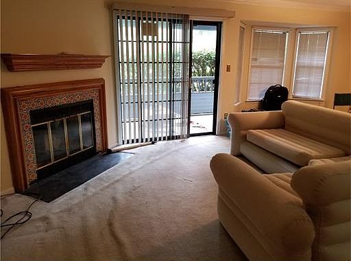 Desirable development set in the woods***Lovely 1st floor unit***Laminate floors to be put in***Woodburning fireplace in formal living room/dining room with sliders to outdoor covered deck***Granite counters in kitchen***