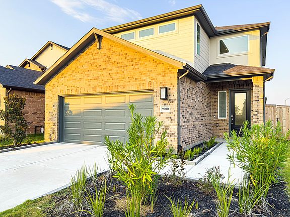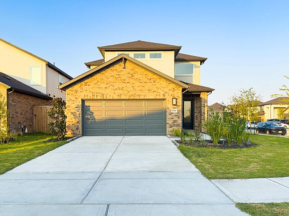 Stunning 4-bedroom, 3-bath, 2-story home situated on a desirable corner lot. Step inside to soaring high ceilings and elegant luxury vinyl plank flooring with rich wood texture throughout the main areas. The gourmet kitchen boasts quartz countertops, a spacious island, abundant modern white cabinets, and stainless-steel appliances. The open family room features tray ceilings, recessed lighting, and an upgraded ceiling fan, creating a warm and stylish gathering space. This thoughtfully designed floorplan includes 2 bedrooms, and 2 full baths conveniently located downstairs, including the primary suite with a walk-in shower, dual sinks, and walk-in closet. Upstairs offers a large Gameroom, a tech room, and 2 additional bedrooms. Enjoy outdoor living under the covered patio, with a sprinkler system for yard. Zoned to top-rated Excellent Schools! Quick access to SH-99. Don't miss your opportunity!