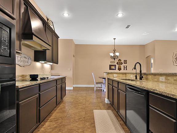 - Breakfast Bar, Ceiling Fan(s), Chandelier, Double Vanity, Eat-in Kitchen, Entrance Foyer, Granite Counters, High Ceilings, His and Hers Closets, In-Law Floorplan, Kitchen Island, Open Floorplan, Pantry, Recessed Lighting, Storage, Walk-In Closet(s)