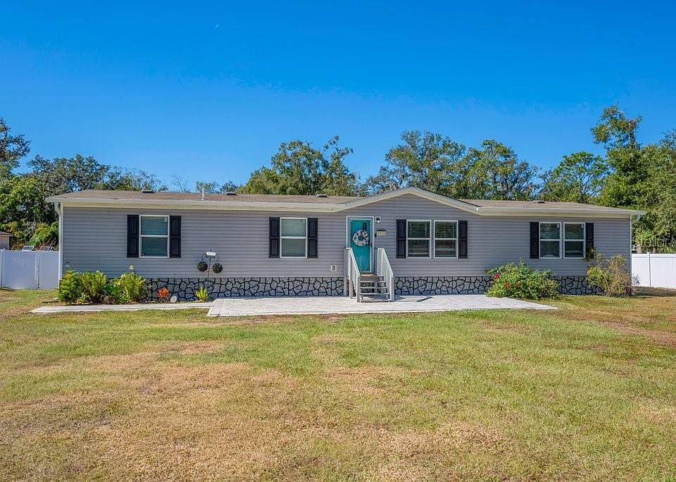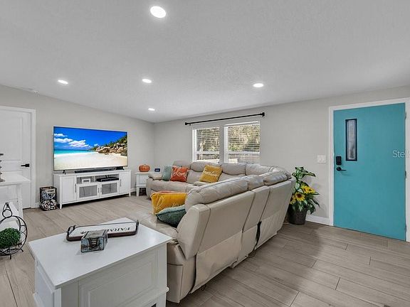 Welcome to your very own Florida oasis in the highly sought-after Keystone Park area of Odessa. Built in 2023, this immaculate 4-bedroom, 2-bathroom home sits just minutes from The Upper Tampa Bay Trail and Peterson Road Park, offering the perfect blend of convenience, comfort, and natural beauty. Tucked away on a quiet street, the property rests on a generous 0.50-acre lot, providing abundant space for future additions such as a pool and spa, an expansive rear deck, a welcoming front porch, or even a secondary tiny home. The landscape is designed for low maintenance and enhanced with mature fruit trees, oak trees, flowers, and native plants that create an atmosphere of serene Florida living. Step inside to an inviting open floor plan featuring a bright and airy great room and a spacious dining area that can easily double as a second family room. Throughout the home, stunning porcelain wood-plank-style tile flooring adds warmth and durability, while both bathrooms are appointed with designer 12x24 tile. The beautifully upgraded kitchen serves as the heart of the home with white shaker-style cabinetry, a custom built-in pantry, quartz countertops, pot and pan drawers, a full-wall designer backsplash, an extended serving bar, and premium appliances. The generous primary bedroom includes a walk-in closet and a spa-like en-suite bathroom offering dual vanities with quartz countertops, a walk-in shower with a built-in seat, ceiling-height tile, and a frameless glass enclosure. A split bedroom layout places the three additional bedrooms on the opposite side of the home, ensuring maximum privacy. The second bathroom is equally impressive with a custom walk-in shower featuring designer tile, porcelain flooring, and a quartz-topped vanity. The separate laundry room adds convenience with a front-load Samsung washer and dryer, a built-in storage cabinet, upper cabinetry, and an exterior rear entry door. No expense was spared in the home’s high-end upgrades, which include pillar foundation construction, a freshly painted interior, and a six-foot privacy fence. The expansive homesite offers ample parking for RVs, boats, and other recreational toys. Centrally located near shopping, dining, and A-rated schools, this exceptional property comes with no HOA and no flood zone requirements. Don’t miss your chance to experience elevated Florida living—schedule your private showing today.