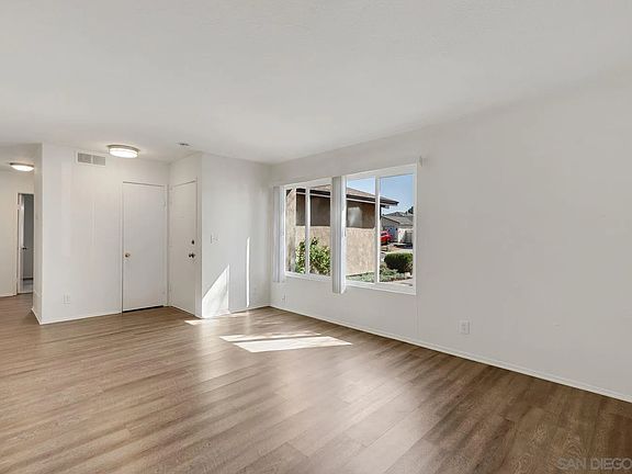 One of the BEST located homes in Mira Mesa. This 4-bedroom, 2-bath house has a recently remodeled kitchen, with new cabinets, new counter tops, and new refrigerator. New vinyl wood flooring throughout. New carpeting in bedrooms. New cabinets in bathrooms. New paint throughout. New window coverings, and new windows. Home has standard 2-car garage with automatic opener. Garage has door that leads directly into the home. New washer dryer. Fenced-in backyard. Quick freeway access, with I-15 two stop lights away. Shopping, Eating, Playing: you are blocks from some of the best multi-ethnic restaurants in Mira Mesa. Many shopping options, too. Regal Edwards Movie theatres just a short stroll away. San Diego Ice Arena, plenty of Parks and the nearby Community Center affords a great deal of "down time". Schools surround the home, with elementary, secondary and high schools all very close.