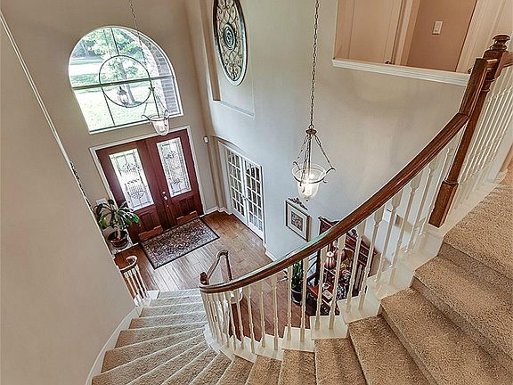 - Interior: Breakfast Bar, High Ceiling, Island Kitchen, 2 Staircases, Alarm System - Owned, Drapes/Curtains/Window Cover