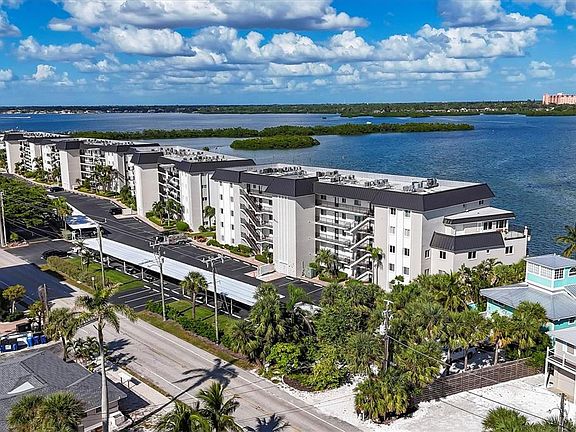 Location! Location! Location! Experience true waterfront living with spectacular views of the Intracoastal Waterway and breathtaking sunrises every morning! This turnkey furnished 2-bedroom, 2-bath condo on the 4th floor of Sunrise Cove offers comfort, style, and convenience. The spacious living room features beautiful wood floors and sliding glass doors that open to a screened-in lanai with remote-controlled blinds, perfect for relaxing and enjoying the panoramic views. The primary bedroom includes wood flooring, a walk-in closet, and an en-suite bath with a large walk-in shower. The second bedroom also features wood floors, a walk-in closet, and views of the Gulf of Mexico and beach across the street. The hall bath offers a walk-in shower and tile flooring. The kitchen opens to the dining and living areas, creating an inviting open-concept layout ideal for entertaining. Additional updates include a brand-new air conditioning unit (2025) and new water heater (2025). Community Highlights: Two heated swimming pools, including an Olympic-size pool with restrooms and a covered lounge area Pickleball and tennis courts State-of-the-art fitness center and game room On-site management with 30-day minimum rentals, offering great income potential Turtle Beach is just across the street, and the free Siesta Key Breeze trolley stops nearby every 15 minutes Two popular waterfront restaurants, Turtles on the Bay and Ophelia’s on the Bay, are right next door Extra storage closet conveniently located near the elevators in the laundry room Recent community updates: new roofs, new docks, and nearly completed new carports Enjoy the best of Siesta Key living—whether as a vacation home, income-producing property, or full-time residence, this fabulous waterfront condo offers it all!