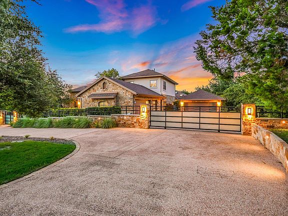 This one-of-a-kind estate offers 5 bedrooms, 5 full baths, a half bath, executive office, media and theater spaces, guest quarters, a large gym, and expansive living areas – all privately situated on 1.13 acres. Experience refined Hill Country living less than 20 minutes from downtown Austin in a walkable, family-friendly neighborhood with parks, tennis, and basketball courts on a quiet cul-de-sac. Built in 2008, expanded in 2014, and featuring a 2023 luxury kitchen renovation with German Leicht cabinetry, Opus White Quartzite counters, Sub-Zero fridge/freezer/wine fridge, Wolf cooktop, dual ovens, Cove dishwasher, Galley workstation sink, and a hidden coffee/appliance station with pull-out tray. The main level includes 3 bedrooms, office, dining, and living with seamless outdoor access. Upstairs offers a guest suite with full bath and flex/game room. The north wing features guest quarters with full bath, an expansive gym overlooking the pool, and a professional theater room built to shell stage for full customization. Outside, enjoy two outdoor kitchens with Alfresco grills, Memphis pellet smoker, and stainless storage. The 75’ PebbleTec pool features beach entry, fountains, ozone and UV sanitizers, motorized cover supporting adult weight, and built-in underwater speakers with Sonos zone. Relax in the Amore Bay spa off the master suite or entertain on patios with BigAss fan and Danley speakers. Additional highlights include custom walnut library shelving, armored security doors, ADT security with 11 HD cameras, Sonos audio throughout, whole-house water filtration, 5-car garage parking, motorized gate, landscape lighting, and private courtyard with fountain. This exceptional estate combines privacy, functionality, and refined design to create a lifestyle unmatched in Southwest Austin. From morning laps in your Olympic-sized pool to evenings under the stars in your custom outdoor kitchen and spa, every day becomes extraordinary at 9011 San Diego.