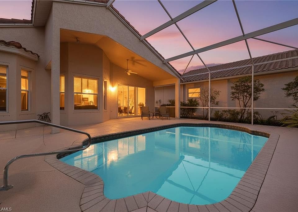 This is not in a flood zone but sellers flood policy is transferable. Welcome to your own private retreat in the heart of Estero! Tucked inside the highly desirable Cascades at Estero, a premier 55+ community known for its vibrant social scene and resort-style amenities, this home offers the perfect balance of comfort and Florida living. The oversized screened lanai showcases a sparkling heated pool that seems to spill seamlessly into the tranquil pond beyond, creating the ultimate backdrop for sipping your morning coffee or hosting evening get-togethers surrounded by lush landscaping. Inside, the kitchen shines with granite countertops, stainless steel appliances, a chic tile backsplash, under-cabinet lighting, recessed LED lighting, and a pantry for storage, while the spacious primary suite is designed to pamper with a walk-in closet, dual sinks, a vanity area, soaking tub, walk-in shower, and private water closet. Custom sunshades, manual storm shutters, and a built-in alarm system provide comfort and peace of mind, and the home was tastefully refreshed in 2017 with updated paint, carpeting, and neutral finishes that create a bright, move-in-ready atmosphere. Additional highlights include crown molding, a two-car garage, and essential updates like a new water heater (2022) plus a 2017 AC, pool heater, and kitchen appliances. Life in Cascades at Estero is second to none with a clubhouse offering indoor and outdoor pools, a billiards room, library, card rooms, an arts and crafts studio with a kiln, and a fitness center with a dance studio, showers, and saunas, while sports enthusiasts can enjoy Har-Tru tennis courts, pickleball, and bocce with active leagues. A lively events calendar keeps things fun and social with entertainment, theater shows, dances, and community gatherings in the grand ballroom, and the location couldn’t be better—just minutes to Naples, Bonita Springs, and Fort Myers with quick access to white-sand Gulf beaches, shopping, dining, I-75, and RSW airport. Low HOA fees make it even more appealing, offering you the opportunity to embrace the Southwest Florida lifestyle in a community designed to keep you active, connected, and inspired. Some photos are virtually staged.