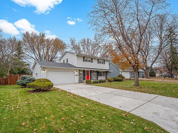 Exceptionally maintained New Hope two-story set on the neighborhood’s most coveted lot—directly across from Holiday Park with its pavilion, playground, ice rink, and summer program activities. Step inside to an inviting main level with southern exposure that fills the spaces with natural light. The layout features an open kitchen with granite and stainless steel, additional living and dining areas, and a vaulted family room anchored by a cozy gas fireplace. Four bedrooms on the upper level include a primary suite with an updated tile shower, an additional full bath, and freshly painted bedrooms. Notable updates throughout include newer windows, a newer roof, an in-ground sprinkler system, and a newer concrete driveway. The fully fenced backyard is ideal for play and entertaining with a wood privacy fence and spacious patio. The finished lower level adds even more living space with a large rec room, recessed lighting, a huge finished laundry room, a relaxing sauna, and excellent storage. Set on a quiet street with easy access to Hwy 169, Hy-Vee, New Hope Aquatic Park, nearby trails, schools, and local restaurants, this home blends comfort, convenience, and a standout New Hope location. Lovingly cared for by longtime ownership. Welcome home!