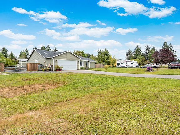 Move-in-ready rambler with 2 owner suites, a finished heated shop on a huge fully-fenced lot in a rural development with easy access to I5. There's also a shed with power and covered wood storage. The shop has carports on 2 sides and chicken or dog run on 3rd side. Gated RV parking. Shop & shed wired 220V. Generator stays. Gorgeous washer & dryer w/warranty stay. Fruit bearing trees include cherry, pear, peach and there's a kiwi bush. So much to see.