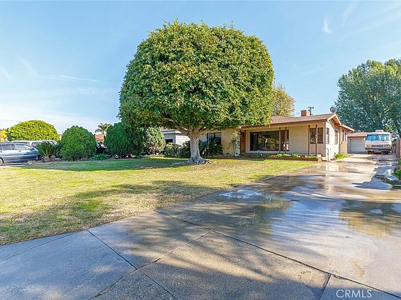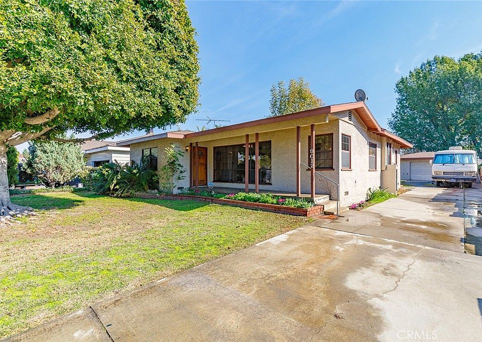 Situated behind Edith Unsworth Elementary, this charming mid-century home has incredible potential. As you enter the front door, the spacious living room with attached dining area is bathed in light from the windows looking out at the front lawn and neighborhood. The spacious primary bedroom and secondary bedroom have large closets. The full bath features a walk-in-tub, separate shower and vintage tile counter. The cozy family room features wood paneling and a large wood burning fireplace with raised hearth. It looks out on the covered porch and expansive backyard.  Pass through a door to the laundry area and the half-bath. The kitchen has a gas range/oven, plenty of storage and room for a small breakfast table. Outside, the covered porch leads to an expansive backyard with pomegranate, lime and tangerine trees, a shed, 2-car garage, large lawn area, room for a garden and more. The long driveway, which is partially gated, provides plenty of room for parking multiple cars and an RV. ADU potential. Come and see this diamond in the rough before it sells!
