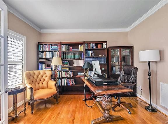 Welcome to 9012 Penny Bridge Mews in the Bayhill Pointe subdivision of Midlothian. This beautiful brick 2-story transitional home consists of 4 total bedrooms (first-floor master suite) & 2.5 bathrooms on 2,681 sqft of living space. Upon entering the home you are greeted with hardwood floors, high ceilings, loads of natural light & upgraded finishing throughout. The first level features an open concept floor plan with a French-door office, formal dining room with tray ceiling, eat-in kitchen with granite counters, tile backsplash, large pantry, stainless appliances & breakfast bar. The vaulted ceiling family room features a gas fireplace and walk-out access to the screened porch & deck. Finishing the first floor is the master suite with walk-in closet & upgraded ensuite master bathroom with double vanity, over-sized shower & soaking tub. The second floor has 3 additional bedrooms with a shared hallway bath & walk-in attic storage. The largest bedroom makes a great bonus room with double closets. The backyard is a true private oasis that is perfect for kids, pets or guests. All completed with a level landscaped cul-de-sac lot, double-width paved driveway & 2-car side-entry garage.