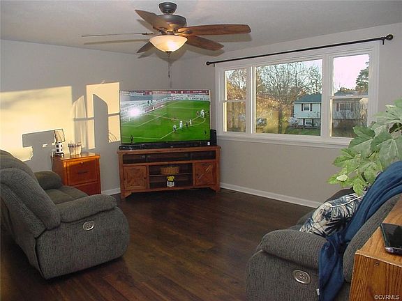 Don't miss this beautifully renovated 5 bedroom, 3 full bath home loaded with upgrades such as easy maintenance vinyl siding and Brand New Vinyl Windows, large eat-in kitchen w/ granite countertops, new lighting, appliances include french door refrigerator, glass top stove & new microwave. There is new interior paint and LVT (luxury vinyl tile) in the kitchen and 2 bathrooms upstairs. New vanities & lighting in all baths + Ceramic tile floor & shower on 1st floor. French doors open from the eat-in kitchen to a 18'9"x16' deck with built-in bench seating + gate to stairway leading to picket fenced patio areas inside the level, fenced back yard with a 10' x 12' detached tool shed, play/ swing set/ + driveway gate. A covered 20' x 14'9"patio is a great place to relax.There is a nice Trane heat pump and plenty of parking on the double width concrete drive. Located on a quiet street in a neighborhood where you don't have to pay HOA fees, you are just minutes from shopping, restaurants, hospitals, recreation areas, golf course & parks , Downtown and Midlothian. It's move in ready!