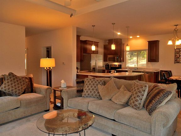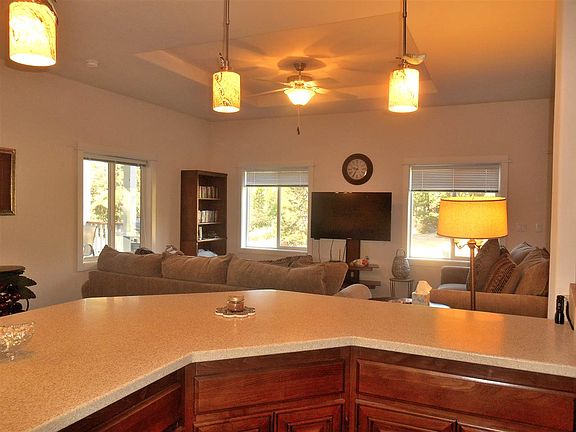 Privacy & views in this fabulous-nearly brand new Fuqua home on 5 acres in Hammond Ranch. Open great room style-this home boasts 1750 sf with 9' ceilings, some with tray design centers,wood wrapped windows,custom kitchen design, corian counters in kitchen & baths. Spaciousness in all the right places-Living room is 20' x 13', kitchen is 19'x 13' and master bedroom is 16'6" x 12'8" with 12'8" x 9'1" master bath! Even the hall is 3'7"wide! Custom 10x27' covered deck on the Eddy Mtn view side with 220 power. Set back off the road, the majority of the 5 acres is behind the home and gently rises for horses, additional structures or just the privacy that is so coveted today.Lawn sod imported from Canada that is slow growing, stays short & has sprinkler system, a one stall plus storage horse barn and well house that have underground electricity to them. Owner will include fully engineered set of plans for a 2 car garage.Underground power is run to the perfect place for either the garage or a granny unit if desired. Site plans are also included showing all underground utilities.Snow removal is handled by Rocky Rd maintenance group. Furnishings may be available.Corners & lines flagged.