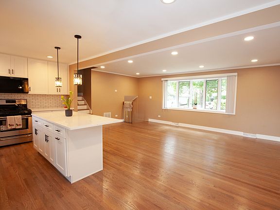 Located near beautiful Buffalo Woods Central Park, this completely renovated 3 bedroom, 2 full bathrooms home is trully one of a kind. Perched on a gentle hill, the property offers breathtaking views and peaceful natural setting. Inside you"ll find newly finished hardwood flooring that adds warmth and elegance throughout the 2nd level. The kitchen features 6'X2.5' sleek quartz countertop, modern appliances, 42" white cabinets. Upstairs features 3 good size bedrooms with hardwood flooring. Full bathroom with double sink quartz counter, ceramic tile flooring, and full size washer and dryer. Family room on main level with gleaming ceramicmat tile flooring and full bathroom with shower. Enjoy the outdoors with a new patio 20X10 and mature trees that give you some shade. This move in ready home blends style, functionality, and quality craftsmanship-all in a sought-after location with easy access to schools, parks, shopping and major highways; close to I-294, I-55 and LaGrange Rd. Award winning School District 117. Don't miss this Hickory Hills gem - everything is done, just move in and enjoy!!!
