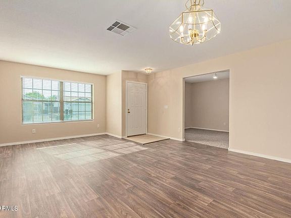 Don't miss out on this charming rental home in a desirable Peoria location! Offering 3 beds, 2 baths, RV gate, & a 2-car garage. Enter to be greeted by a welcoming living & dining room combo! Continue onto the family room that opens to the kitchen, allowing a greater traffic flow. Vaulted ceilings add to the airy feel, complemented by tons of natural light, neutral palette, tile & wood-look flooring in common areas, and plush carpet in bedrooms. The kitchen has built-in appliances, track lighting, wood cabinetry, & an island w/breakfast bar. Versatile den is ideal for an office! Main bedroom boasts an ensuite with a separate tub/shower & a walk-in closet. Laundry room with built-in shelves for added convenience. Check out the tranquil backyard with covered & open patios! Credit score of 700 or better for ALL tenants/applicants