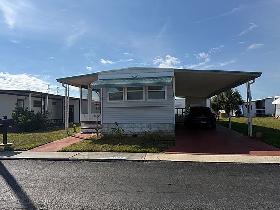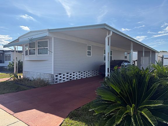 Seize this rare opportunity to own an expertly upgraded home at a price that simply cannot be beaten in today's market. Every essential element has been thoughtfully renewed with premium materials-from the protective exterior vinyl siding to the designer waterproof Pergo flooring, professional sheetrock walls, energy-efficient windows, and a roof backed by a lifetime warranty. Why spend years and thousands on renovations when this turnkey property is available now? The brilliantly designed open-concept layout creates a natural flow between the kitchen, living room, and dining area that both families and entertainers will appreciate. Stylish new cabinets with contemporary hardware transform both the kitchen and bathroom, while abundant natural light streams through the kitchen's bay window. Your guests deserve the privacy and comfort of their dedicated room with an en-suite half bath, while you'll enjoy the luxury of a corner shower-tub combination and spacious vanity in the main bathroom. The spare bedroom has been refloored with plywood and is ready for the laminate to be installed, which is in the hall closet. You can see this in the photos. Location is everything-and this home delivers exceptional convenience with its position just steps from the community clubhouse and heated pool. With two storage sheds and a two-vehicle carport, practicality meets comfort in this peaceful haven. At an incredibly low $975 monthly lot rent, this Shalimar Village property in Port Richey offers an unmatched lifestyle opportunity just 40 miles from Tampa, less than three miles from beautiful beaches, and minutes from both premier shopping at Gulf View Square Mall and the natural splendor of Werner Boyce Salt Springs State Park. Perfect as your retirement dream home or winter retreat, this exceptional property combines quality, location and value in ways rarely found in today's market. Don't wait-your piece of Florida paradise awaits.