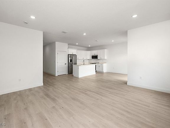 The heart of the home features a spacious kitchen with a large island and bar seating, quartz countertops, stainless steel appliances, a pantry, and plenty of cabinet space, perfect for everyday living and entertaining. Luxury vinyl plank flooring flows throughout, adding warmth, durability, and a welcoming feel.