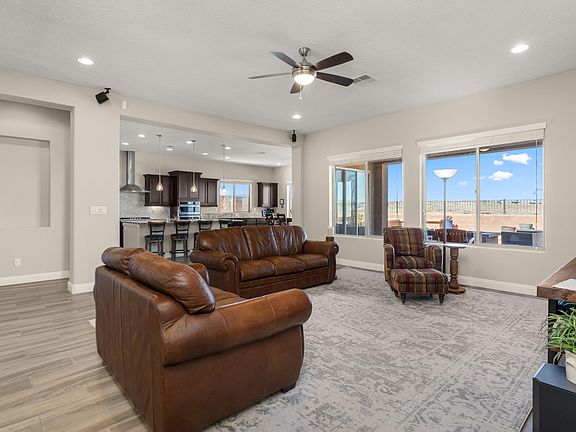 Breathtaking setting for this Pulte home w/desirable Patagonia floor plan. Windows facing north showcase endless mesa views & backyard designed by Hilltop to include a firepit and salt water spa. Sandia views to the east makes for an outdoor oasis. Walk through a private courtyard into this spacious home flooded w/natural light & open living concept. Gourmet kitchen features 5-burner gas cooktop, oversized island & extended countertops. Ample cabinets & storage w/Cafe area. 5 bdrms plus an office/flex space, multi-generational living possible. Owners suite offers dual vanities, dressing area, walk-in closet and large shower w/dual shower heads. Separate in-law suite w/full bath. Finished 3cg. Water softener, ADT security system, reverse osmosis. Many upgrades to this beautiful home.