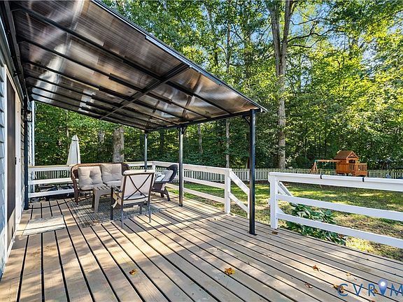 Come view this charming home located on an acre, wooded lot in the heart of New Kent! This 3 bedroom, 2.5 bath home features new LVP flooring throughout the first level for easy maintanance and durability. The Kitchen comes complete with smooth top electric cooking, microwave and French door refrigerator. The garage has an automatic door opener for ease. All appliances convey, including the washer and dryer. Upstairs features 3 bedrooms and 2 full bathrooms. A private back yard is spacious for kids or pets and the gutters come complete with gutter guards. This home won't last long. Quiet neighborhood, great layout and ready to move in!