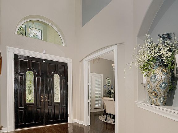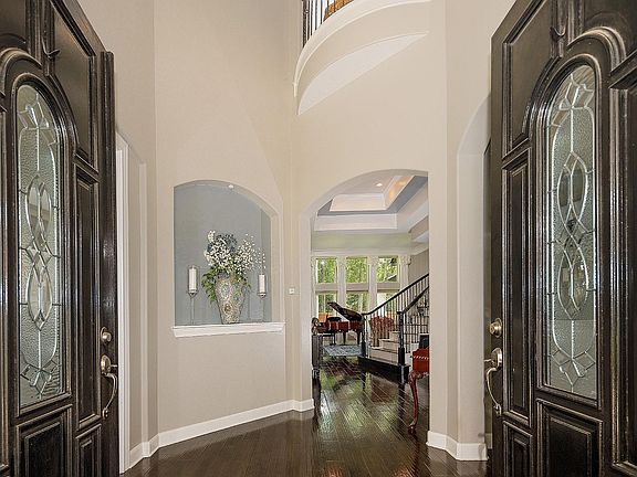 Exceptional David Powers custom home on a .75 acre lot in Crighton Ridge! Stunning curb appeal with a gated driveway, and pristine landscaping enhanced with lighting. Highlights include a new roof, spray foam insulation, energy efficient windows, 3 new HVAC units, 2 new water heaters, radiant heat barrier interior paint, and hardwood flooring throughout. Tiled courtyard with water fountain off the formal dining and study with coffered ceiling; open and airy kitchen with custom island, breakfast bar, stainless steel appliances, and transom windows overlooks the sunny breakfast room; owner's retreat on first floor; 3 bedrooms, game room and bonus room up (currently being used as an exercise room); oversized 3 car attached garage; private, fenced yard with covered patio has plenty of room to entertain!