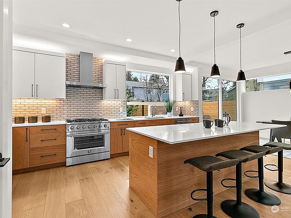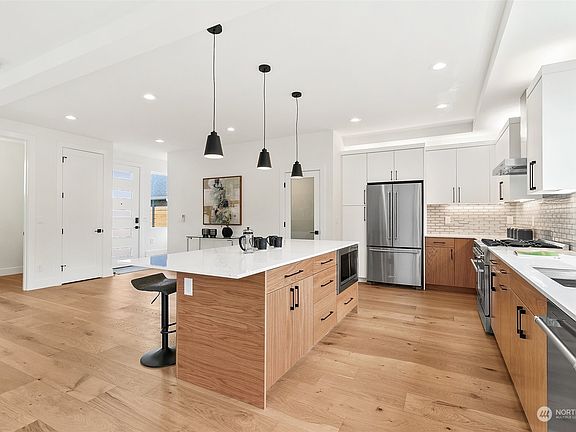 Welcome to your dream home! Experience luxury living in this beautifully finished 4-star green-built home. The kitchen features custom cabinets, stainless appliances including a chefs dream 36-inch gas range, tile backsplash, a walk-in pantry, under-cabinet lighting, and kitchen island. Upstairs are 3 spacious bedrooms including a primary w/5 pc en-suite featuring rain shower, heated tile floors, and soaker tub. Enjoy the outdoors utilizing the spacious rooftop deck or your very own fenced-in private backyard oasis. Other features include; tankless water heater, gas fireplace, mini-split, keyless smart lock & ring doorbell. No HOA fees and a 40-amp charger complete this amazing package. Close to Alki, restaurants, transit.