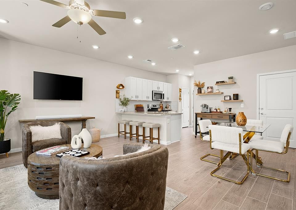 Welcome to your stunning retreat in the highly sought-after Goodnight Ranch community of South Austin! This exceptional home combines contemporary comfort with thoughtful amenities, perfect for modern living with LOW 1.7 TAX RATE. Located just minutes from downtown Austin, this home offers the perfect balance of suburban tranquility and urban convenience, with easy access to shopping, dining, and entertainment venues. Step inside to discover an inviting open floor plan that seamlessly blends living, dining, and kitchen areas perfect for entertaining and gathering around the kitchen island area. The kitchen features upgraded hardware on the shaker cabinets and boasts stainless steel appliances, including a washer and dryer for added convenience. Ideal for those seeking space and versatility, this home offers two generously sized master bedrooms, one of which includes a convenient office nooka perfect setup for remote work or study. For your furry companions, there's a dedicated dog lounge, ensuring they have their own comfortable space within the home. Outside, the landscaped backyard provides a picturesque setting for outdoor gatherings and entertaining. Additionally, the front courtyard features a barbecue area and seatingideal for hosting friends and enjoying the vibrant community atmosphere. Goodnight Ranch is renowned for its recreational amenities and family-friendly environment. Residents here enjoy multiple trails for walking and biking, a well-maintained dog park with waste stations, and easy access to amenities like disc golf, playgrounds, a pool, and a splash park. Onsite retail shopping, fitness centers, medical facilities, pet care services, and grocery stores are conveniently located nearby, with additional amenities slated for future development. Education and safety are top priorities with new schools within walking distance, a newly constructed fire station, EMS services, and a medical clinic ensuring peace of mind for residents.