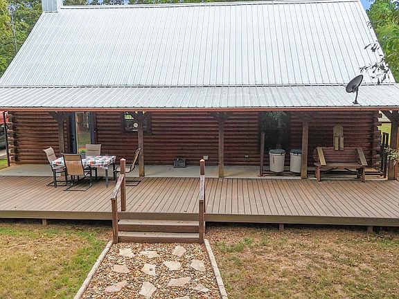 WOW!! Welcome to your private East Texas retreat! This stunning 2008-built Satterwhite Log Cabin sits on 15.3 wooded acres with a running creek and endless room to roam. The 3-bedroom, 2-bath home combines rustic charm with modern updates, featuring a cozy wood-burning fireplace, new metal roof (2023), new LVP flooring, granite counters, new kitchen appliances, and a remodeled walk-in shower. Recent upgrades also include a 4-ton HVAC system (2023), whole-house generator, and new front and back doors for peace of mind. Outdoor living shines here with a covered front porch, brand-new Trex deck on the back porch, and a backyard firepit overlooking the forest. A fully insulated “She Shed” with mini-split AC makes the perfect creative or relaxation space, while a chicken coop adds country charm. Two spacious shops (720 SF and 900 SF) offer unlimited potential, with one boasting a 10,000 lb 2-post hydraulic lift and half bath. The property is well-equipped with two septic systems, two electric power sources, and two water sources, plus RV hookups for easy guest accommodations. A pipe fence with gated entry enhances security and curb appeal. For the outdoor enthusiast, the land offers four hunting blinds, a serene creek with a bridge, and abundant wildlife. Whether you’re searching for a weekend getaway or a forever home, this property delivers the perfect balance of privacy, functionality, and modern comfort.