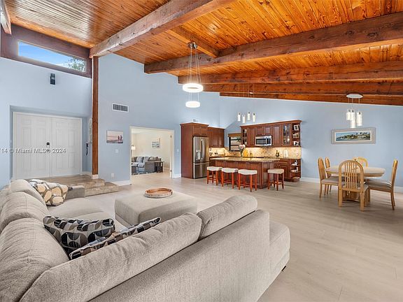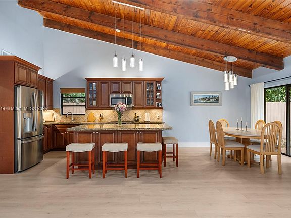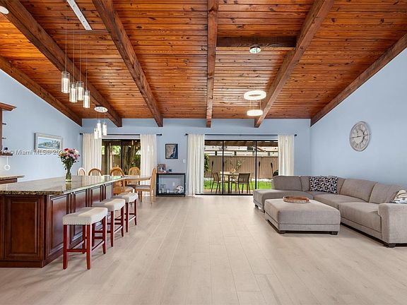 Stunning home located in the highly sought-after Pepperwood Community. Nestled in a cul-de-sac surrounded by lush greenery, this property features 3 bedrooms, 2 bathrooms, a large family/bonus room, impressive living space with asymmetrical vaulted beam ceilings, and lovely garden views from every window. The kitchen, living room, and dining area flow nicely together as an open concept, showcasing updated kitchen appliances and new hardwood floors. Large windows and doors create a seamless indoor-outdoor feel and skylights further brighten up the main living areas. Spacious primary bedroom w/high ceilings, two closets, and large bathroom. Hurricane impact windows & shutters. Fantastic location near great schools and shops. Community offers pool and tennis courts. Get ready to fall in love!