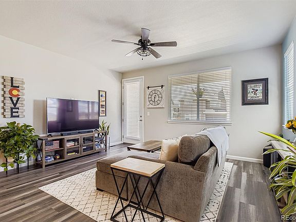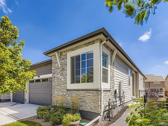 Low maintenance living.  Beautiful ranch style paired home in Compark Village features 2 bedrooms, 2 baths, living/dining room, kitchen, unfinished WALKOUT basement and 2 car attached garage. Beautiful upgrades and finishes throughout including luxury vinyl plank flooring, slab quartz counters & island, stainless steel appliances, under sink water filtration system, updated bathroom fixtures, finished garage (finished walls/ceiling/floor coating) and more.  Recent major updates include roof replacement to Class 4 impact resistant shingles (4/24) and new concrete driveway (2024). Feels like a single family home.  Meticulously maintained – pride of ownership shines throughout.  No HOA (Cottonwood Highlands Metro District).  Relax on the private covered deck overlooking the greenbelt/walking trail behind or grill on the covered patio below the deck.  Great for yourself or as an investment property.  Finish the basement for even more living space.  Large windows allow the natural light to cascade in – bright and cheerful.  Quick and easy access to E-470. Close to dining, shopping, entertainment and other amenities. Don't miss your opportunity.  Welcome Home!