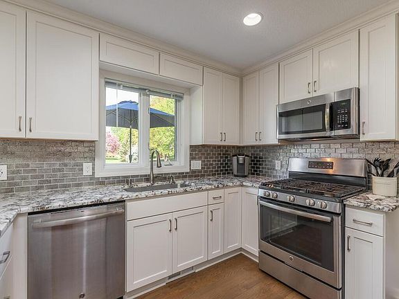 Beautiful two story home located in highly sought out Dellwood Estates. Main floor has been totally remodeled to include a beautiful kitchen with granite counter tops, premium soft close white kitchen cabinets, stainless appliances, custom stained white oak flooring, updated main floor bath and painted throughout the home. Other improvements include new maintenance free deck , furnace, a/c, clothes dryer, garage door opener and updated landscaping. Upper level features 3 bedrooms, Master Bedroom with private bath. Unfinished lower level to build additional equity and 4th bedroom. Great location as it is close to LRT Trail, parks, shopping, restaurants and EP schools. A MUST SEE and move-in ready. Please see supplements for all information.