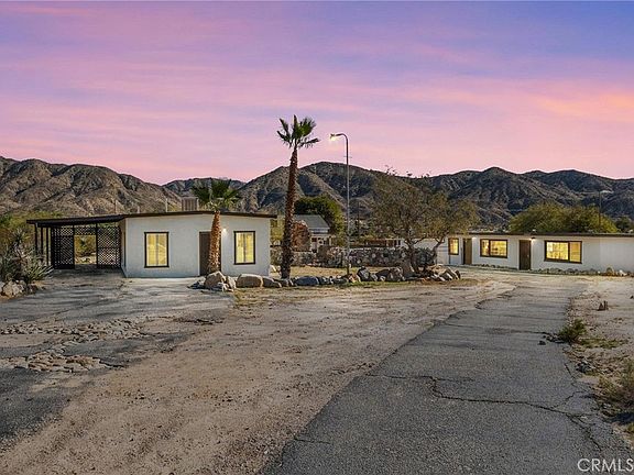 DESERT CO-LIVING COMPOUND! Spanning approximately 2 acres in the heart of Morongo Valley, 9016 Rose Eden Dr brings together space, creativity, and desert character in a rare multi-home setting. With three single-family homes on one lot, this property is ideal for those looking to develop a personalized compound surrounded by scenic desert terrain, rolling hills, and sweeping sunset views. Located just off 29 Palms Hwy, the property includes two separate entrances, giving the layout a private and spacious feel. The main residence—approximately 2000 sq. ft. across two stories—includes 3 bedrooms and 3 full bathrooms. Significant improvements are already completed, including a new roof, new windows, new rough plumbing, new rough electrical, and HVAC. The home is plumbed for two kitchens, creating the ability to shape the interior to your preferred style and arrangement as you move toward final finishes.Two additional detached single-family homes—approximately 800 sq. ft. and 850 sq. ft—provide separate structures suited for guest spaces, creative studios, workspace, or other unique uses (buyer to verify). A workshop/storage building adds even more utility to the property. For automotive or project-focused users, a dedicated mechanic’s area features three electrified 40-ft containers and a 15,000 lb hydraulic lift. A private water well supplies water to all structures, and each building has its own electric meter, supporting a variety of multi-structure layouts. A distinctive open “ruins” courtyard adds desert character and creates a memorable outdoor zone that can be shaped into a gathering or display space. With wide-open land, mountain vistas, and an impressive multi-structure layout, this property delivers a standout desert setting ready to be shaped into your own vision.
