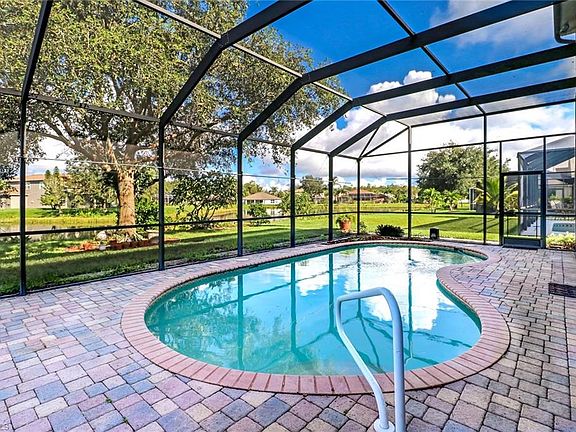 Danforth Lakes is a hidden gem of a community in a tough to beat area of Fort Myers. Knockout combination of community and home with this 2 story pool home boasting 5 bed, 3.5 baths, over 3,200 square feet and water views! Walk through the front door, past the dining area and straight into the tiled living area/kitchen where a wide open 3 door slider offers tranquil views of the pool and water! Two bedrooms downstairs share a bath in between with the rear bedroom granting lanai access through double sliders. Upstairs offers a bonus room/open area at the top of the stairs with double door sliders out to screened balcony. Spacious master suite also connects to Balcony allowing a much more expansive water view from the second story. Master bath is equipped with ample vanity counter top space as well as separate tub and shower. Custom shape pool with brick paver lanai. Backyard also features paver walk way and beautiful landscaping including an oak tree for shade and fruit trees. This home is close to the amenity center including tennis courts, community pool and common area. Tough to ask for a better combination of home, community and community. Take advantage before it's gone!