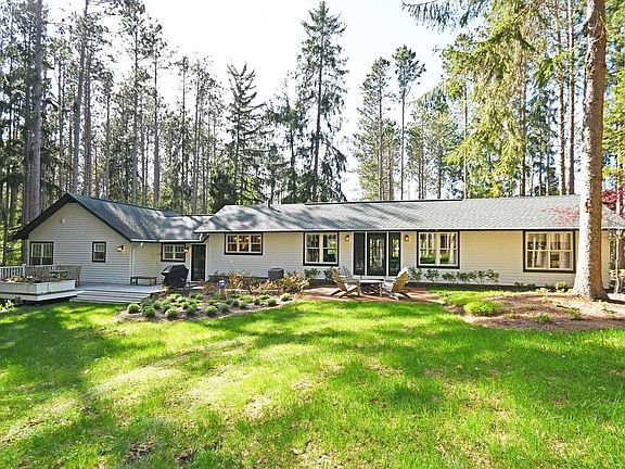 A truly polished, exquisite classic. This elegant yet understated home and property gives a nostalgic feel of a camp in the Adirondacks, a coastal Maine retreat, or of course, a classic Glen Lake cottage. It’s the best of all worlds – the feel of your own “Kellerman’s Resort,” nestled among towering pines, with both a natural and manicured landscape, and all things that are wonderful about a nod to vintage style, while being entirely updated, renovated, and extremely comfortable. The moment one steps foot on this property, both inside and out, the quality, craftsmanship, and dedication to design is genuinely palpable. There is history steeped in this home, originally built in the 1940’s as the library for an area resident, and while staying true to its roots, has evolved in to a four bedroom, three bathroom, sprawling one story space with two master suites (one on either side of the home) and a spacious living room and dining room space with views of wildlife and greenery at every turn. There are also two additional bedrooms, an additional bathroom, a library known as the “Glen Lake Room,” and a mud room space over the two car garage. Meander outside to the beautiful stonework patio, deck with dining area, and of course, down the sloping front lawn to the newly installed pickleball court, complete with a light filtering pergola and padded stadium seats, welcoming hours of fun with family and friends. Beyond what exists on this incredible property, is the fantastic proximity to the turquoise waters of Big Glen Lake (which is just across the road with several easy access points to the water), the very short walk to both the wonderful Le Becasse for French dining, a beautiful patio for happy hour, and the beloved Trattoria Funistrada. A short drive of just a few miles will have you nestled in to the town of Glen Arbor, the famed Sleeping Bear Dunes, and of course, the shores of Lake Michigan. This is a property that is, without a doubt, too fantastic to miss.