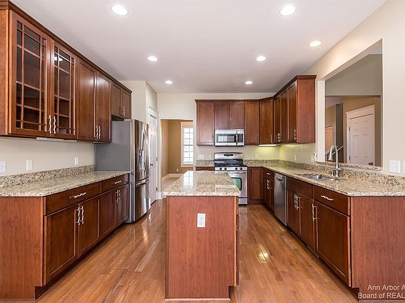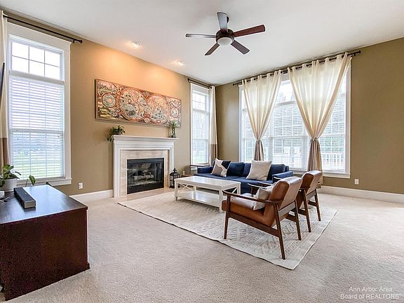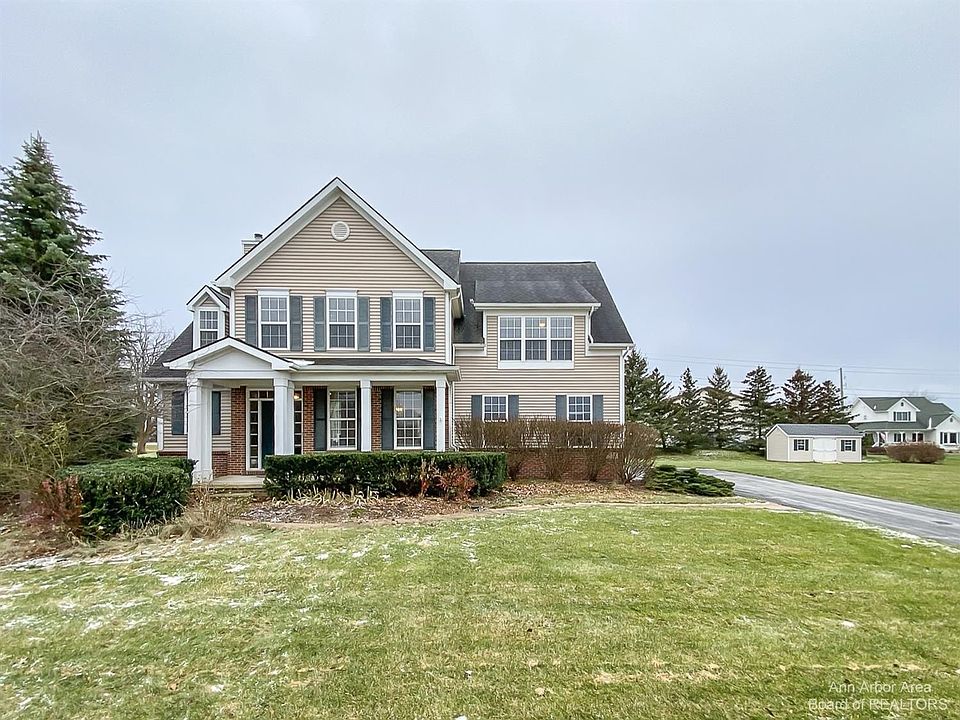 Highest and best offers due 6pm on Sunday, 1/16! Located on over an acre this Gregory Farms home was built in 2005 with 2568sf, 4 bedrooms, 2.5 baths & a finished lower level. Minutes to downtown Dexter & highway access. Gleaming hardwood floors, neutral decor & a great floor plan. Gas fireplace in the family room with modern ceiling fan is located off the kitchen area. Cherry cabinets with granite countertops, center island & eat in niche with access to back deck. Formal dining room, powder room & back mudroom entrance with custom bench and hooks complete the 1st floor. 2nd level large Primary Suite with tray ceiling & tons of natural light. The bathroom has a jetted bathtub & tile shower, dual sinks, Cherry cabinets & linen closet. 3 additional bedrooms, all ample in size. Main bath has dual sinks, tile floor & fiberglass 2-piece bathtub/shower enclosure. Finished lower level with large flex space with egress window. Storage room, dual zone heating system, central A/C, sump pump with backup, sprinkler system & side entry garage.