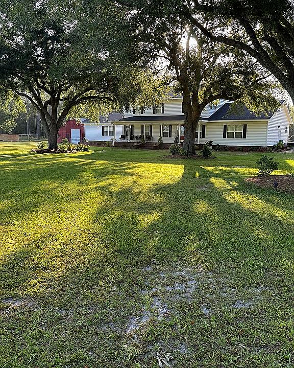 Experience the charm of this gorgeous country estate set on 6.5+ acres in desirable Hahira, GA. Nestled among stunning oak trees at the front of the house, this well-maintained 5-bedroom, 3.5-bathroom home offers spacious living areas and serene outdoor spaces. The main floor features a recently updated master bedroom with an adjoining office/flex space and a luxurious spa-like master bathroom. Entertain effortlessly with a large dining room, a cozy living room with a fireplace open to the kitchen, and a sprawling bonus space/game room with a convenient half bathroom. Step outside to enjoy a fabulous sunroom, a large screened porch, and a deck perfect for hosting gatherings and grilling out. Upstairs, find four additional bedrooms and two full bathrooms. Step outside to discover a wired workshop/red barn, ideal for hobbies or storage. Embrace the beauty of nature and picturesque sunsets from your front porch in this idyllic country retreat. **We are currently not interested in listing with a realtor HOWEVER, we will definitely be willing to cooperate with a buyer agent!
