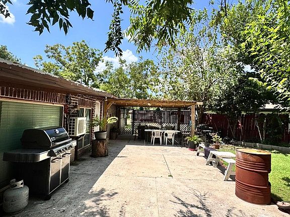 Huge backyard with sheds, covered patio and open space for outdoor gatherings.