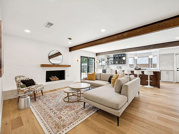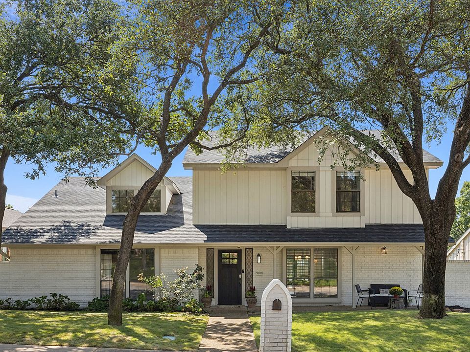Nestled on a quiet, tree-lined street in the heart of Lake Highlands and zoned to the award-winning Moss Haven Elementary, this thoughtfully updated home offers a rare blend of elegance, comfort, and everyday livability. Designed with entertaining in mind, the kitchen features a generous center island and opens seamlessly to the formal dining and living areas. French doors open to views of the oversized pool and multiple outdoor seating areas, while a charming side yard with café lighting and a dining area creates another inviting spot to gather with family and friends.