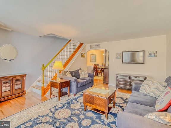 Beautiful interior townhouse in prime Pennypack Gardens . Traditional air lite , long front lawn , front cement patio. Newer front security door and screen door . Formal living room with coat closet , bay window , beautiful hardwood floors . Formal dining room with hardwood floors, chandelier, chair rail , base molding. Updated eat in kitchen with ceramic tiled flooring, white cabinets, laminate countertops, recessed lighting, garbage disposal , tiled backsplash, ceiling fan , chair rail . Sliding door off dining room onto a large partially covered rear deck . Finished walk out basement level with carpets , recessed lights , base moldings, gas fireplace . Long laundry hall with washer / dryer / extra refrigerator . Large power room with ceramic tiled flooring, sink , toilet and extra storage under the steps . 100 amp service breaker box , rear exit door to a rear fenced driveway and garage ( partial ) shortened for powder room . 2nd floor offers rear bedroom 1 with carpets , ceiling fan light , closet . Middle bedroom 2 , with carpet , closet . Modern hall bathroom with ceramic tiled flooring floor and walls , skylight, interior linen closet , sink with granite top ,vanity . Primary bedroom with ceiling fan light , carpets , wall closet and single closet . Modern windows through out , 6 panel doors . Forced hot air hvac , c/a . Well maintained home to make your own . Close and convenient to I95 , Betsy Ross , center city .Pennypack park and walking trails . NE shopping mall and restaurants. Professional photos coming soon . Beat the spring market rush , get into this home today !! Schedule your private tour today !!