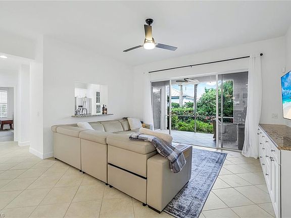 Step into refined coastal living in this beautiful first-floor coach home in upscale Osprey Pointe of Pelican Marsh. Offering over 2,060 sq. ft. of light-filled 3 bedrooms and 2.5-bath residence which lives like a single-family home with voluminous ceilings, 8 ft doors and attached 2 car garage. Bright and sunny southern exposure boast open floor plan with plantation shutters, and 8 ft sliders leading to the expansive screened lanai for year-round enjoyment. Kitchen boast a sunny eat in breakfast area with access to the lanai. The spacious primary suite includes oversized walk-in closet, and spacious bath with soaking tub and separate shower. The exterior is currently being freshly painted white which is complimented by the New gray metal roof/ 2025. Pelican Marsh is ideally located to the best beaches, plethora of shopping and dining at Mercato. Amenities include an onsite community center complete with open air restaurant, fitness center with a variety of classes, pickleball, tennis, onsite Pro, onsite Pro Shop, bocce courts and more! Private Pelican Marsh Golf Club also offers optional social memberships. The Audubon Certified 18-hole championship golf course was designed by world-renowned architect Robert von Hagge, and reflects his appreciation for natural setting with expertly designed practice facility and Learning Center featuring on-site PGA Golf Professionals.