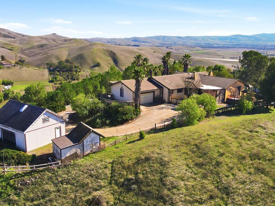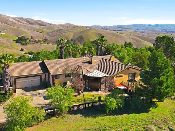 Minutes from downtown Livermore yet feeling worlds away, this 5+ acre hilltop estate sits at the top of a private gated road w/ sweeping 360° views & exceptional privacy. A wrap-around circulating driveway winds through a boutique vineyard, leading to a single-level home oriented to capture dramatic sunrises, sunsets, & long valley vistas. Large picture windows, sliders & decks create seamless indooroutdoor flow, while the layout offers open living & dining spaces, spacious bedrooms, & a primary suite framed by striking views. The design is inviting as-is yet offers potential to reimagine the home into a warm modern ranch, a vineyard-inspired retreat, or a private sanctuary. The lot provides generous usable space for outdoor living, gardens, or future vision. An attached two-car garage, separate three-car garage, & storage shed add convenience for vehicles, equipment, hobby use, or vineyard operations. Multiple seating areas & elevated decks offer peaceful places to unwind or entertain, surrounded by rolling hills, natural beauty, & complete stillness. With no neighboring homes in sight, this estate delivers rare serenity, space, & unmatched landscapesyet remains just minutes from downtown, acclaimed wineries, parks, & everyday conveniences.
